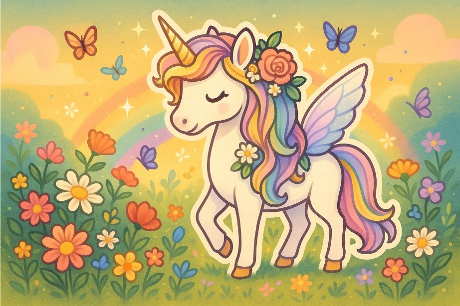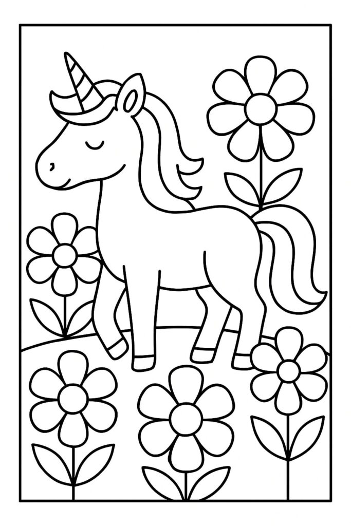 - Kleinkinder (3–4 Jahre): Große Flächen, einfache Blumenformen und ein klar erkennbares Einhorn.