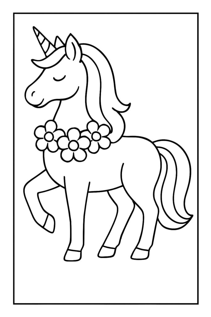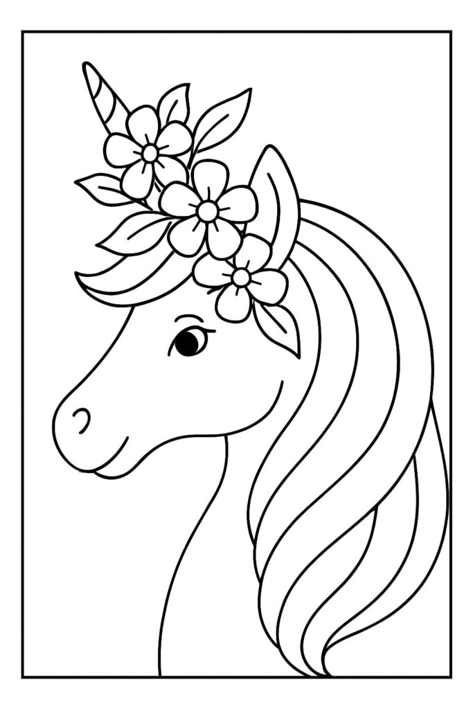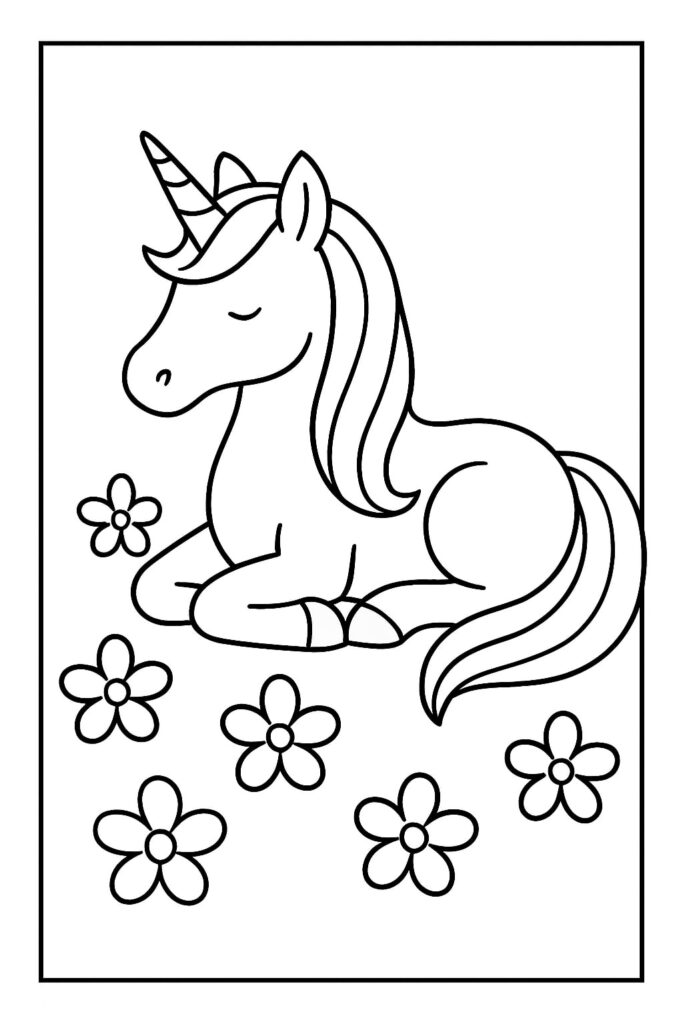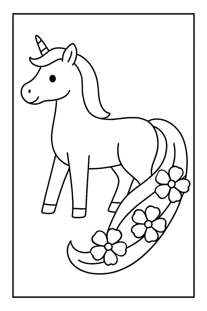 Ein einhorn mit blumen ausmalbild vereint Natur, Magie und Fantasie in einem einzigen Motiv. Ob als einfaches Kinderbild oder detailreiches Kunstwerk – das Ausmalen bietet Freude, Entspannung und kreative Entfaltung.