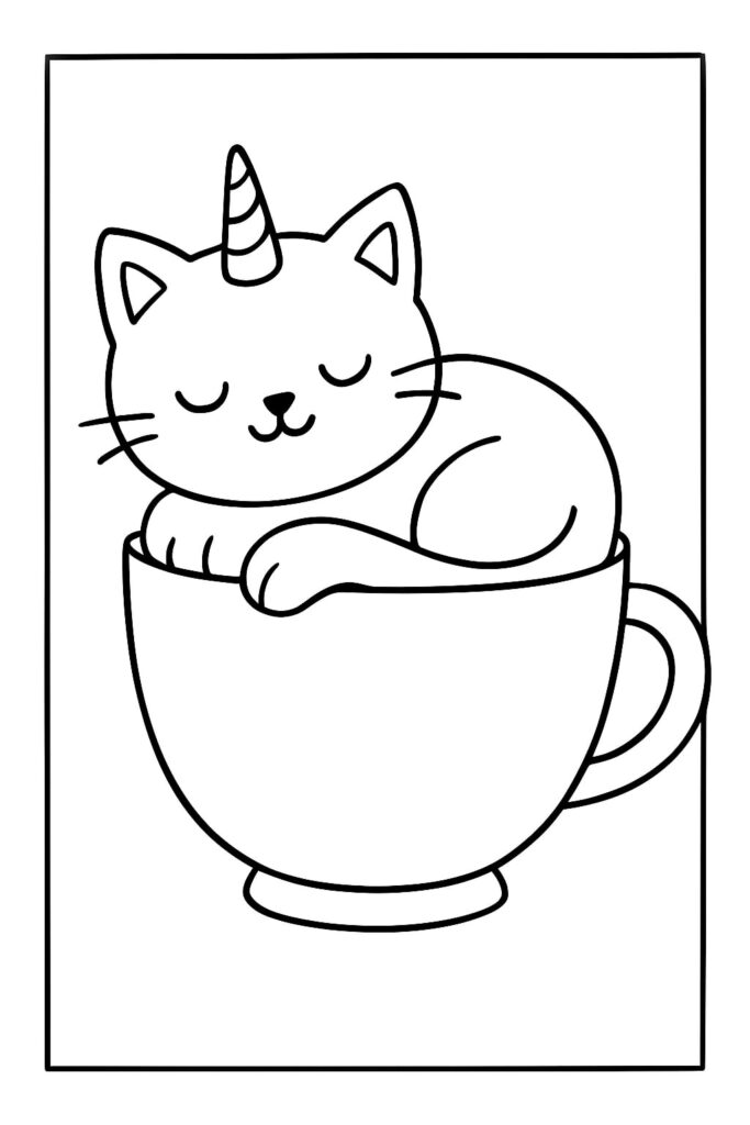 Ein einhorn kätzchen ausmalbild strahlt Positivität aus. Es steht für Sanftmut, Freundlichkeit und Mut zur Fantasie. Das Motiv erinnert daran, dass Magie in kleinen Dingen steckt – in Freundschaft, in Träumen und in Farben.