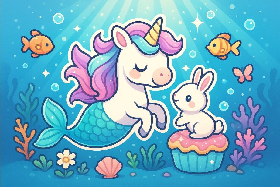 Ein ausmalbild einhorn katze meerjungfrau bringt Humor hinein und motiviert Kinder, eigene Fantasiewesen zu erfinden..