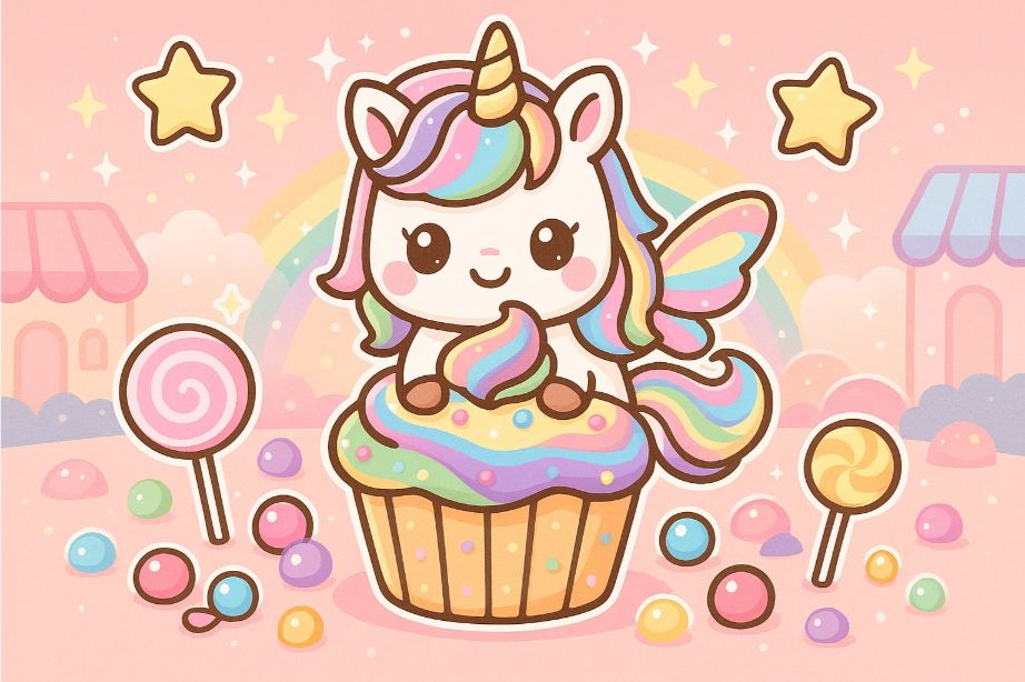 Das Einhorn ist seit Jahren eines der beliebtesten Fabelwesen. Es steht für Magie, Freundschaft und Träume – Eigenschaften, die Kinder besonders ansprechen. In Kombination mit Muffins oder Cupcakes entsteht ein Motiv, das Lebensfreude und Verspieltheit ausstrahlt.